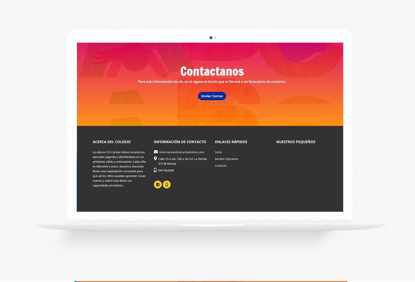 El Centro Educativo Infantil Caritas Felices o CEI Caritas felices se especializa en el aprendizaje de los niños que cursan el nivel escolar preescolar y primaria.